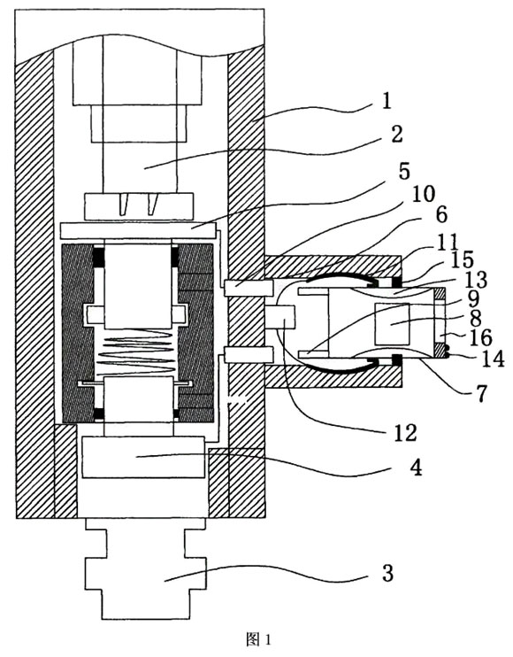 見圖1,一種顯示型壓力變送器,包括殼體1,設置在所述殼體1上的連接件2、引壓接頭3,在所述殼體1內設有傳感器芯體4和電路板5,電路板5與所述連接件2電連接,傳感器芯體4與所述引壓接頭3相連接,所述傳感器芯體4與電路板5相連接,在所述殼體1上設有插槽6,還設有與所述插槽6相配合的顯示腔插接塊7,在所述顯示腔插接塊7內設有顯示屏8,在所述顯示腔插接塊7上設有插接端子9,在所述插槽6內設有與所述插接端子9相配合的插接座10,所述插接座10分別與電路板5和傳感器芯體4相連接,在所述插槽6的內側壁上設有卡位鉤11,在所述插槽6的底部設有控制所述卡位鉤11卡位固定所述顯示腔插接塊7的控制彈片12,在所述顯示腔插接塊7上設有與所述卡位鉤11相配合的卡位槽13。